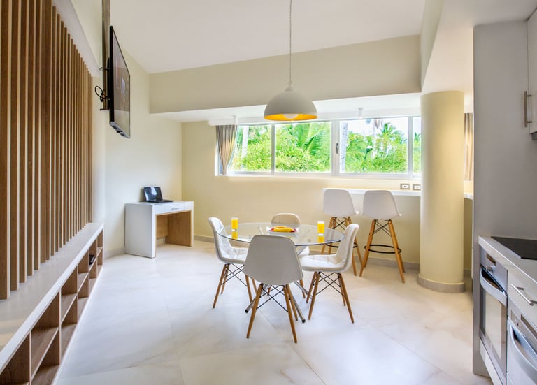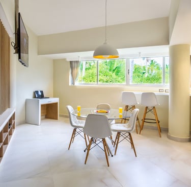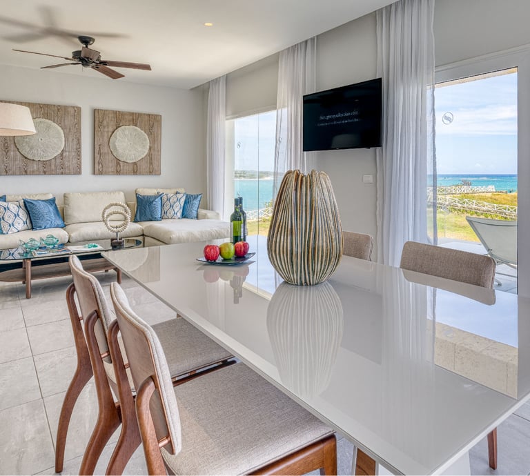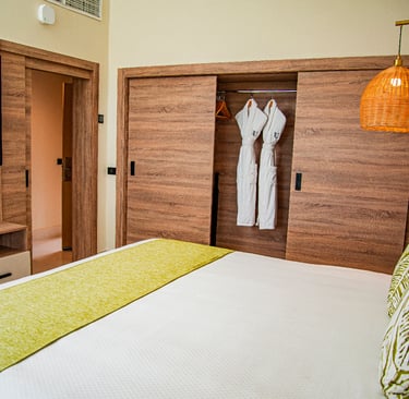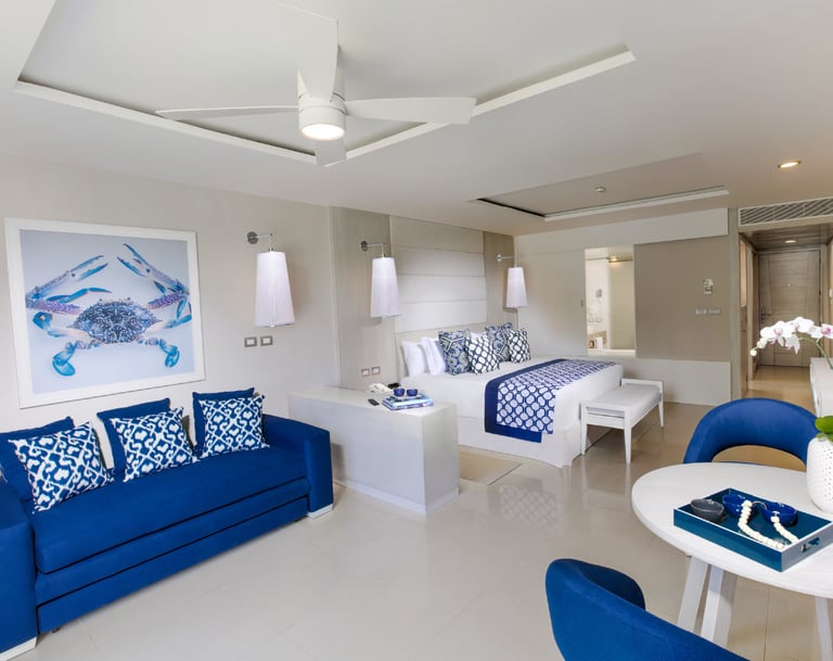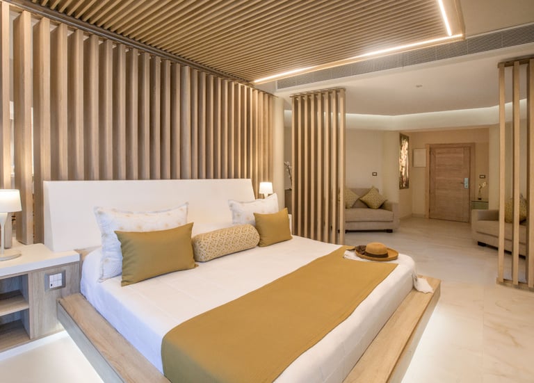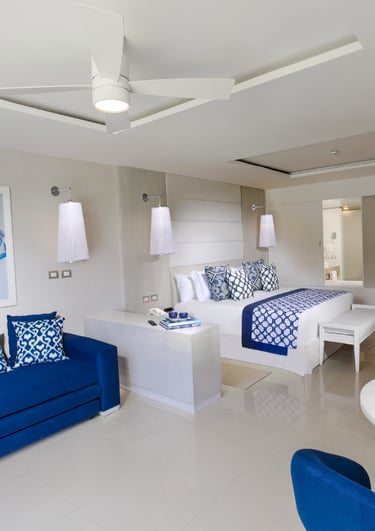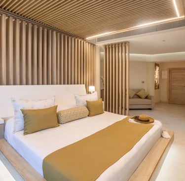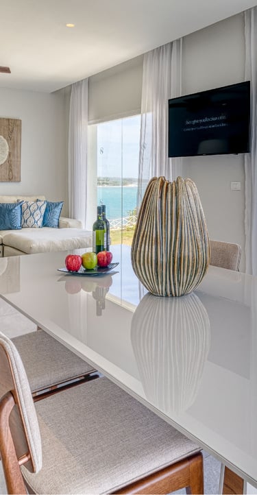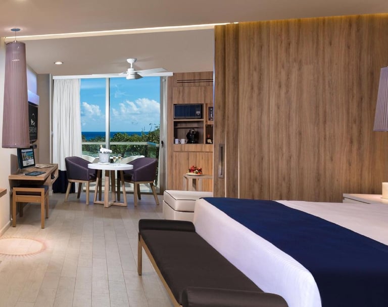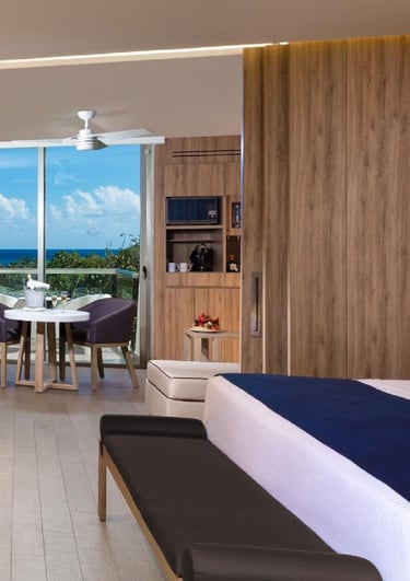Disfruta de una experiencia única en nuestra suite de lujo, equipada con todas las comodidades modernas y vistas impresionantes al mar.