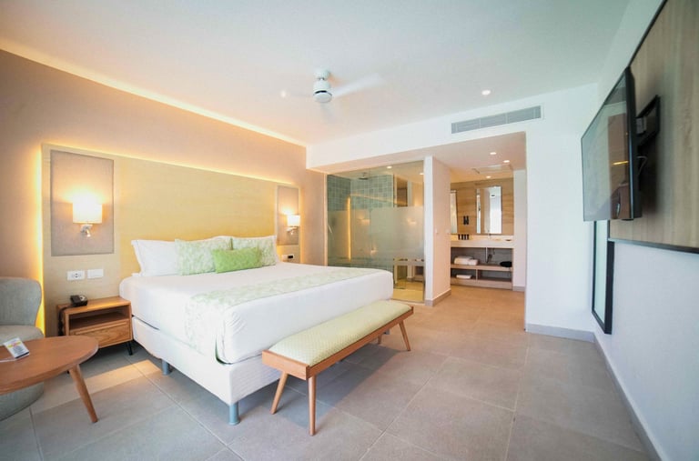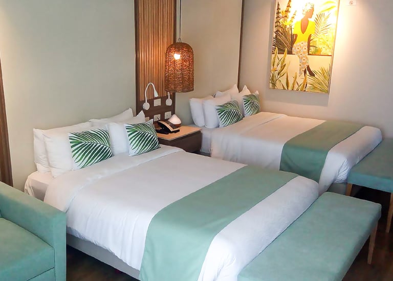 Perfecta para amigos o familias pequeñas, Premium Room Doble cuenta con dos camas dobles que garantizan comodidad sin sacrificar estilo. Con un diseño contemporáneo y servicios exclusivos, esta habitación ofrece el equilibrio ideal entre funcionalidad y relajación en un entorno caribeño.