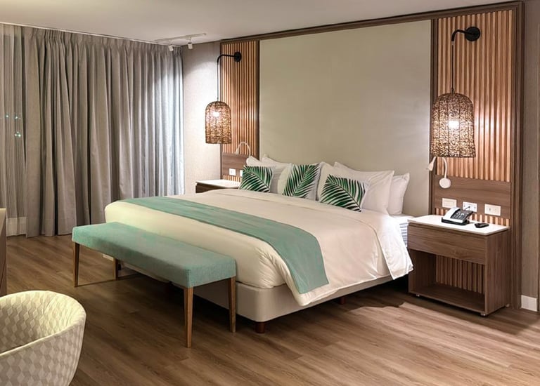 Disfruta de una estancia sofisticada en la Premium Room King, equipada con una lujosa cama tamaño king, mobiliario moderno y detalles elegantes. Ideal para parejas o viajeros que buscan confort y exclusividad, esta habitación ofrece vistas privilegiadas, amenities de alta gama y acceso a servicios premium.